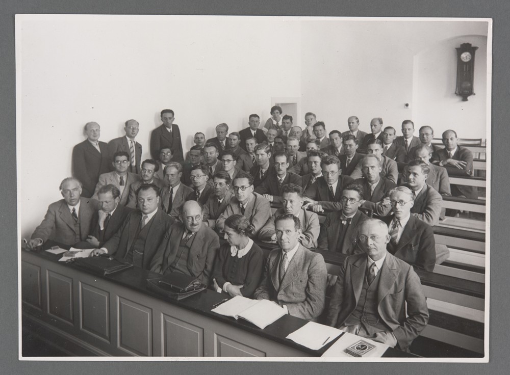 *Kaupmannahafnarráðstefnan, 1937.* (fremsta röð frá vinstri) Bohr, Heisenberg, Pauli, Stern, Meitner, Ladenburg, Jacobsen. (önnur röð) Weisskopf, Møller, Euler, Peierls, Hund, Goldhaber, Heitler, Segrè, Hoffer Jensen. (þriðja röð) Placzek, Weizsäcker, Kopfermann, (óþekktur), Hulthén, Mercier, Gustafson, Casimir, (óþekktir). (standandi við vegginn) Jensen, Rosenfeld, Wick, (óþekktur), Koch, Madsen, Levi. (fjórða röð) Arley, (óþekktir), Laslett, Sørensen, (óþekktur), Frisch, David, Oliphant, Kapur, London, Buch Andersen, Dunning. (fimmta röð) Brostrøm, Bjerge, Rasmussen, Bøggild, Kalckar.